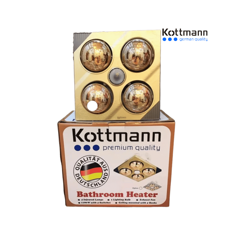 - Đèn sưởi Kottmann K4BT: Sưởi ấm tức thì với 4 bóng âm trần, kết hợp đèn chiếu sáng tiện lợi.